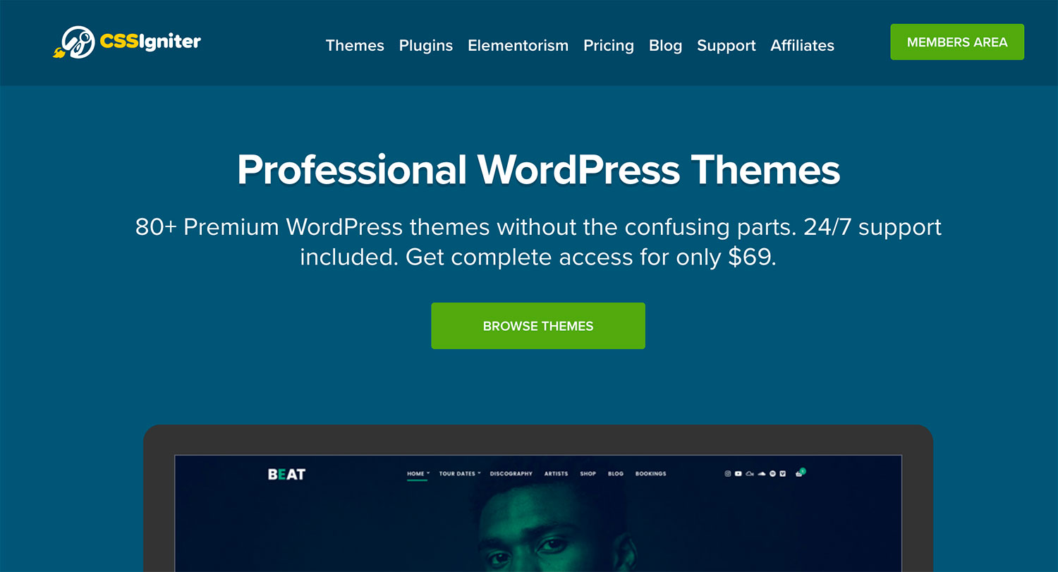 Founded in 2008, CSSIgniter offers three types of WordPress products directly from its website: