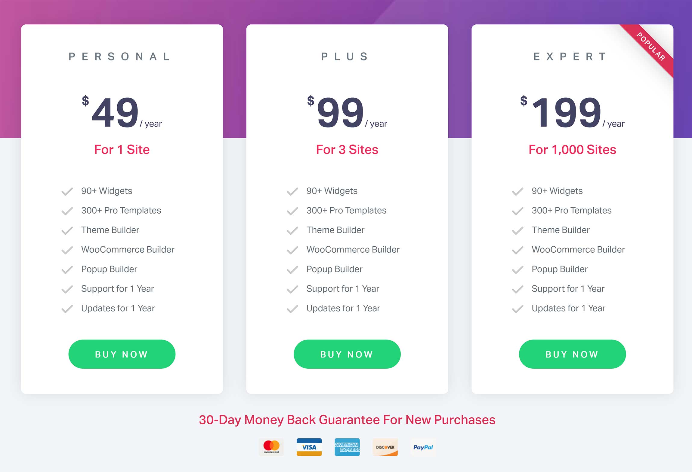 If you only have one website, Elementor Pro is the cheapest option at only $49 a year.